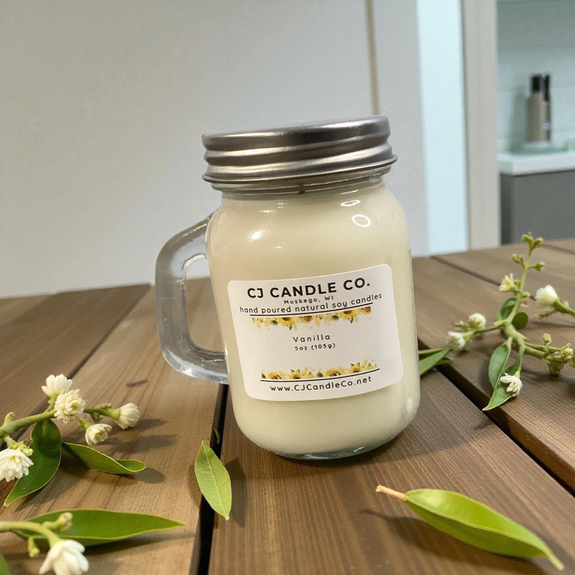 Awaken your senses with our hand poured, natural soy wax candle in a cute mason jar. The subtle vanilla scent will relax and soothe you, creating the perfect ambiance for any occasion. With a sleek silver lid, it also makes a great decor piece. Experience the luxury of our vanilla candle today!